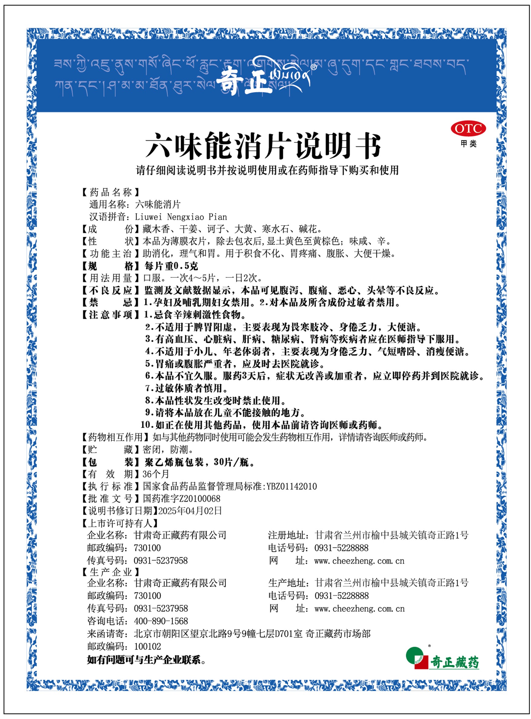 甘肅奇正藏藥有限公司按照六味能消片獲批的《國家藥品監(jiān)督管理局藥品補(bǔ)充申請(qǐng)批準(zhǔn)通知書》(編號(hào):2024B06184)內(nèi)容,對(duì)六味能消片藥品說明書中的【不良反應(yīng)】、【禁忌】和【注意事項(xiàng)】進(jìn)行了修訂及備案,現(xiàn)將新版說明書予以發(fā)布,如您需要更為詳細(xì)的信息或有特定的問題,可以聯(lián)系客服400-890-1568或撥打企業(yè)電話:0931-5228888。